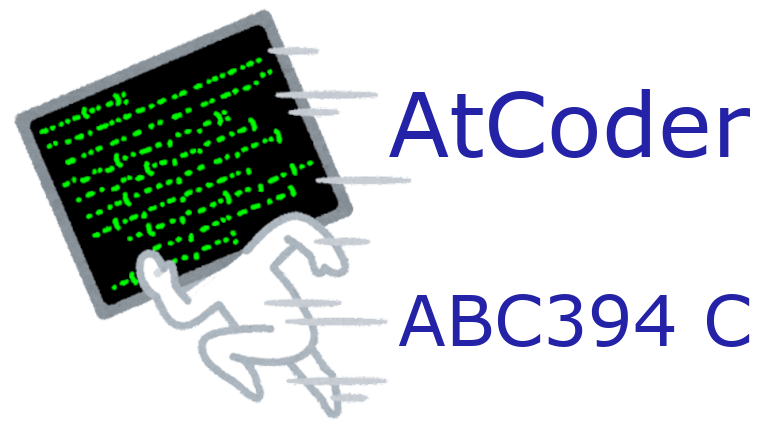 AtCoder が提供しているABC(AtCoder Beginner Contest)394 C問題をC++とPythonで解いてみました。ABC394は、2025年2月22日21:00に実施されました。